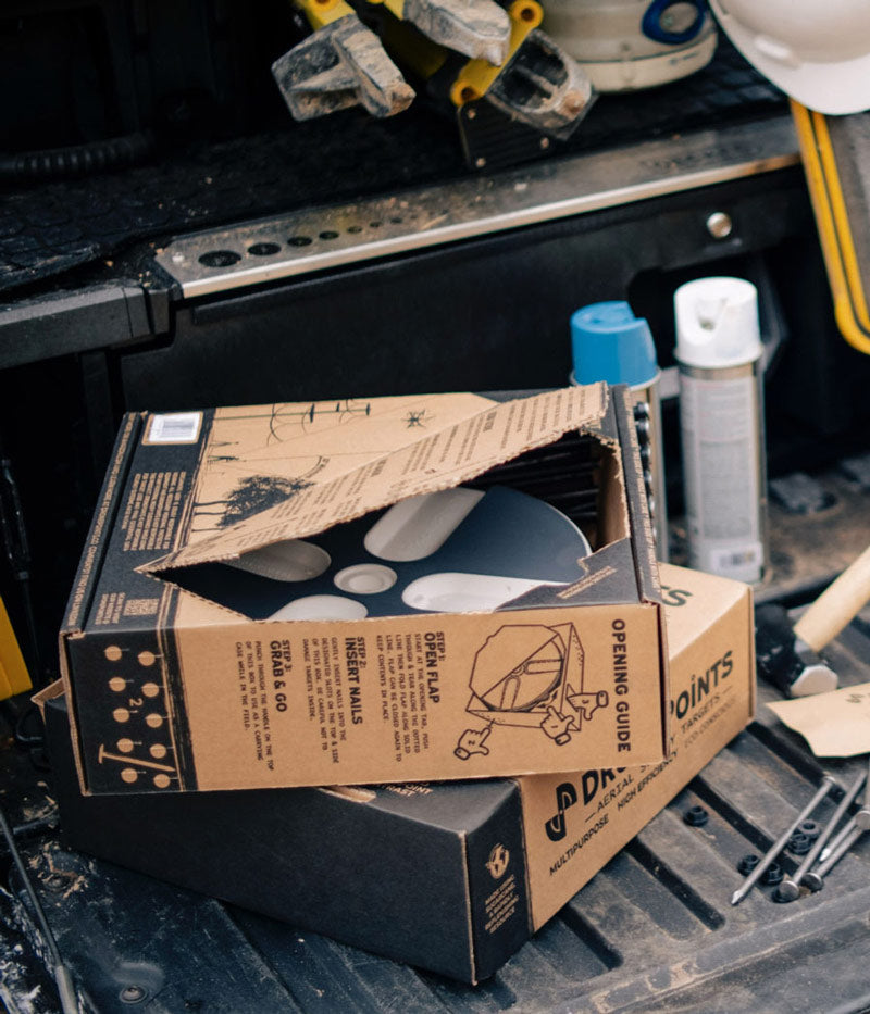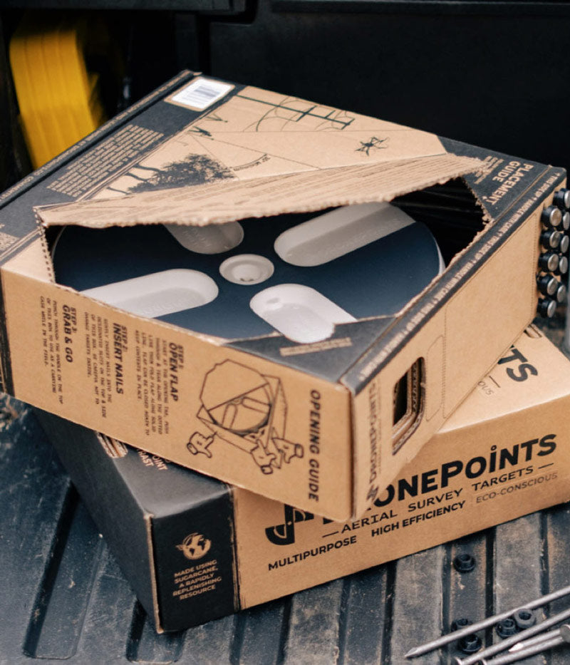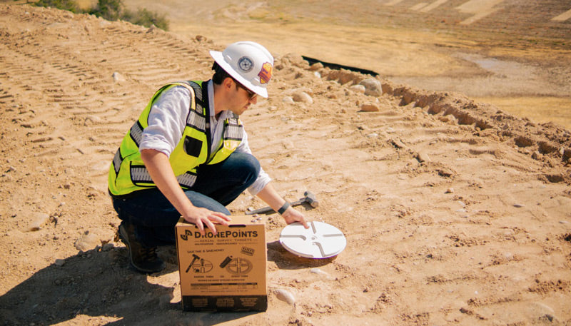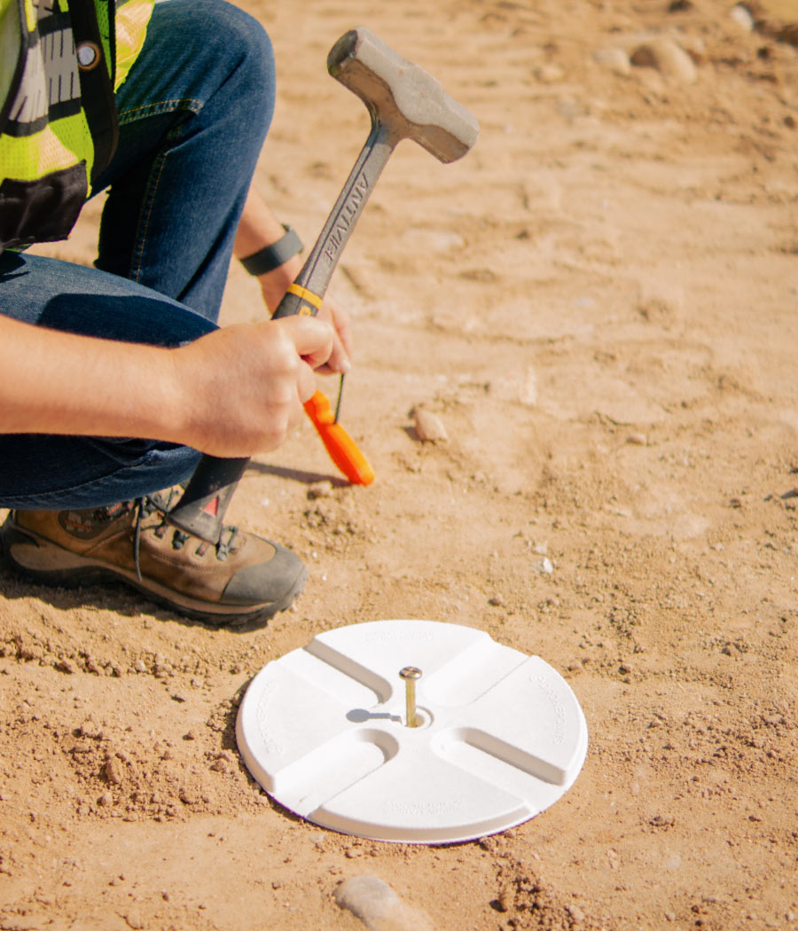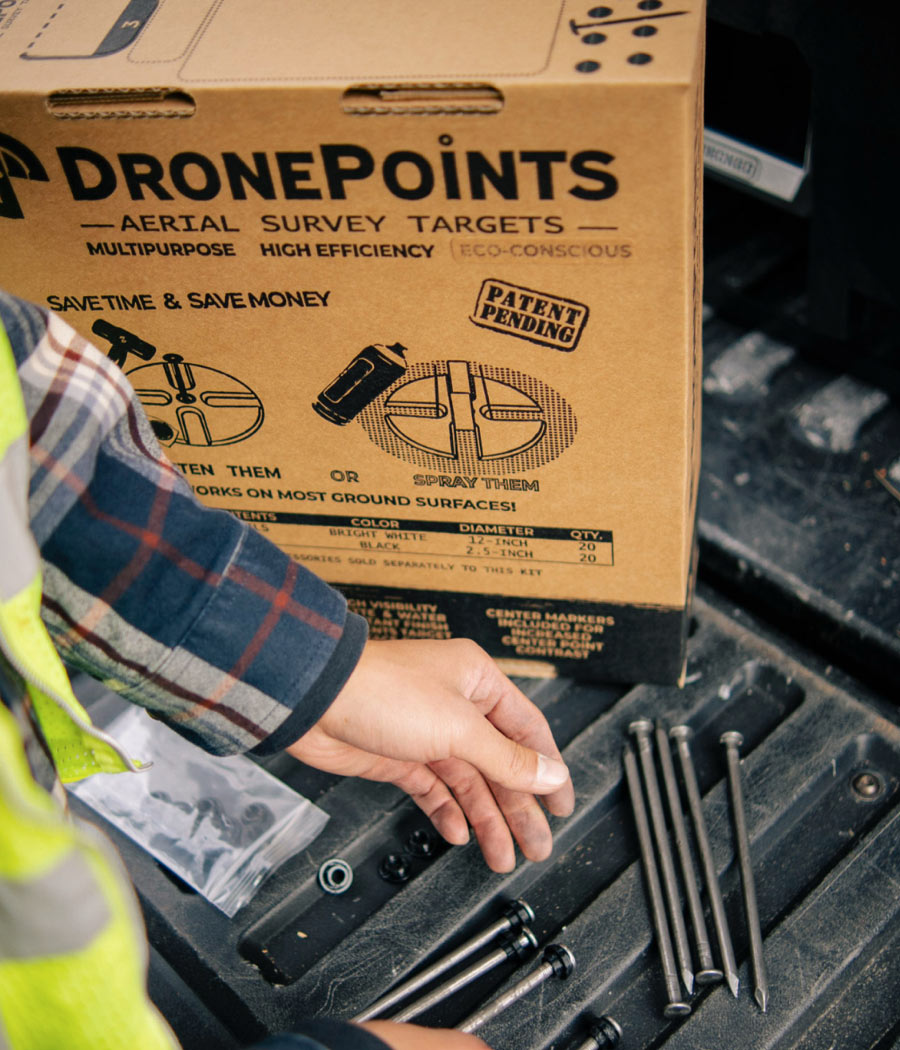 Setting up DronePoints Aerial Targets is quick and straightforward—just secure each target with a single nail for reliable placement on unpaved ground surfaces. We recommend placing targets immediately before scheduled data collection to minimize risk of loss or displacement. This best practice ensures maximum reliability and saves time in the field. DronePoints kits include ground-fastening nails, so all you need is a hammer.
