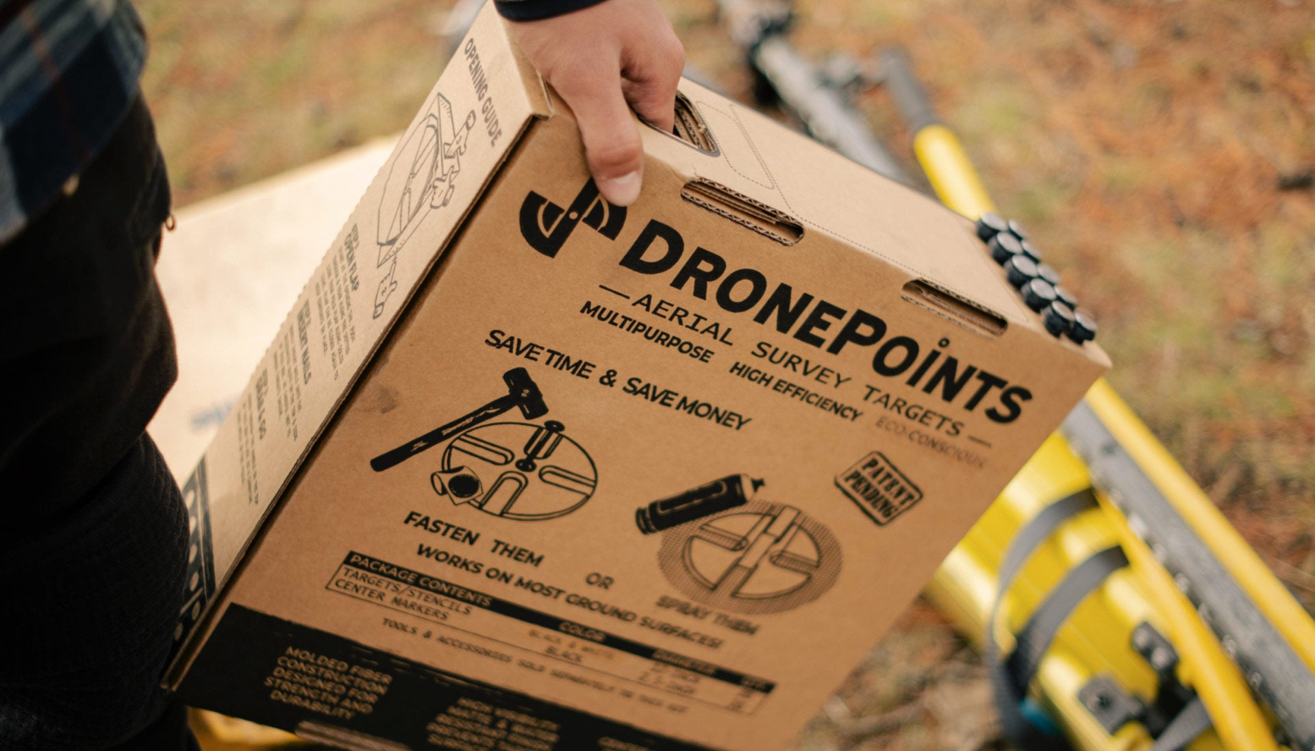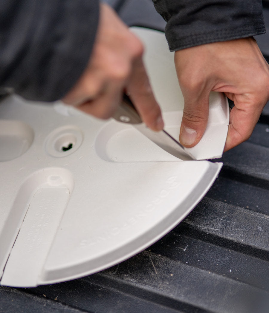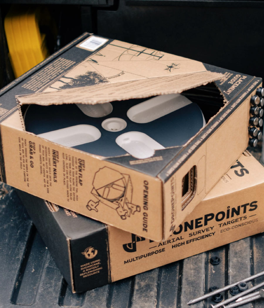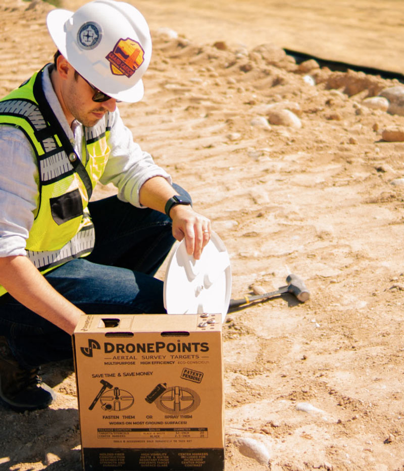 Setting up DronePoints Aerial Targets is quick and straightforward—just secure each target with a single nail for reliable placement on unpaved ground surfaces. We recommend placing targets immediately before scheduled data collection to minimize risk of loss or displacement. This best practice ensures maximum reliability and saves time in the field. DronePoints kits include ground-fastening nails, so all you need is a hammer.