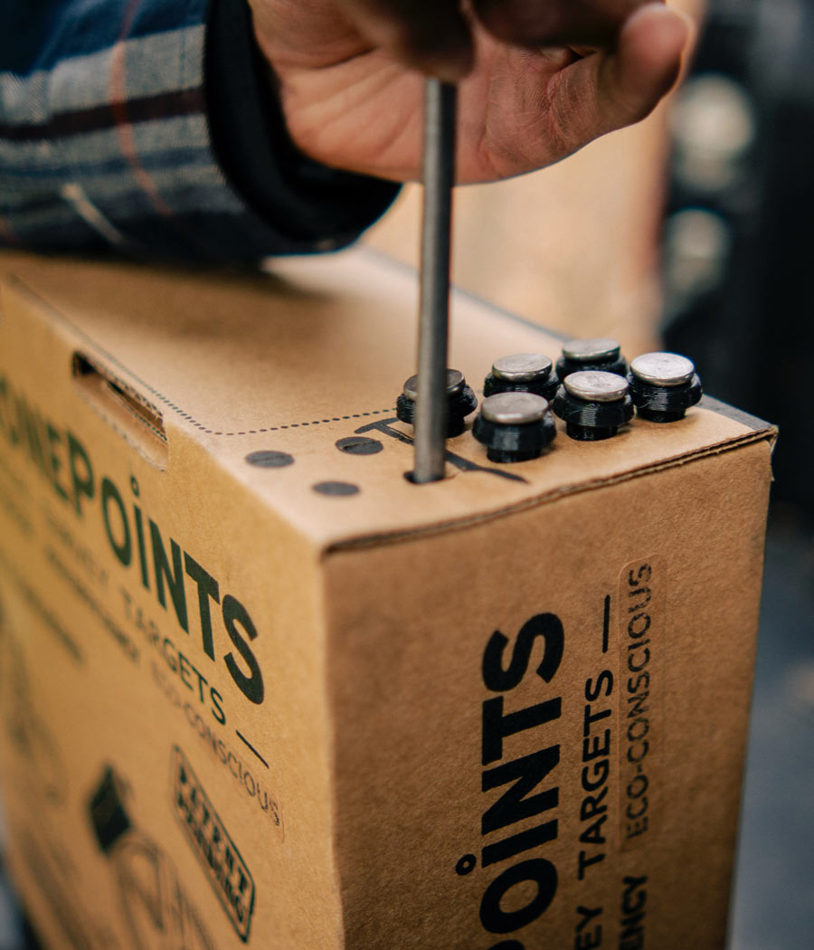 Warning: If you're using a knife to cut along the perforated line, be extra cautious to avoid personal injury. Additionally, be mindful of the pressure and depth of your cut to prevent any damage to the targets within the box.