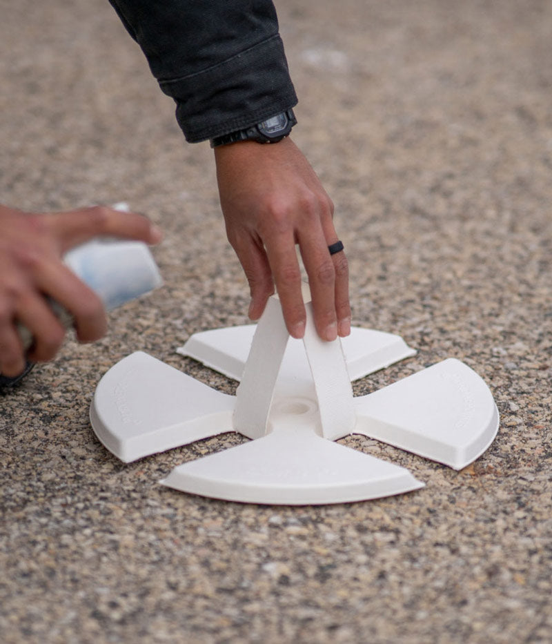 Tip for Optimal Application: Keep the stencil flush against the ground while spraying. If you notice any part of the stencil lifting, gently apply pressure towards that direction using the handles. This helps maintain contact with the surface, preventing under spray or blurry edges.